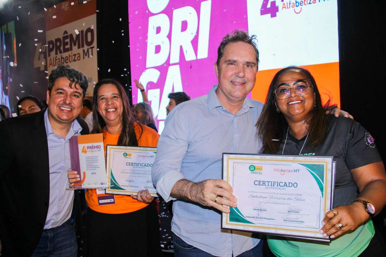 A rede municipal de Várzea Grande teve 12 escolas contempladas com o Prêmio Alfabetiza MT 2025. Além da premiação principal – ‘Escolas Top 10’ - a educação municipal foi vencedora na categoria Desempenho e na de professora que mais se destacou na Alfabetização Com Equidade.