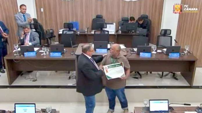 O plenário da Câmara Municipal de Várzea Grande entregou, ontem (7), Moção de Aplausos ao senhor Odorico Raimundo da Costa, coordenador de Iluminação da cidade, em reconhecimento aos relevantes serviços prestados à comunidade. A Moção é de autoria do vereador Calistro Lemos do Nascimento.
