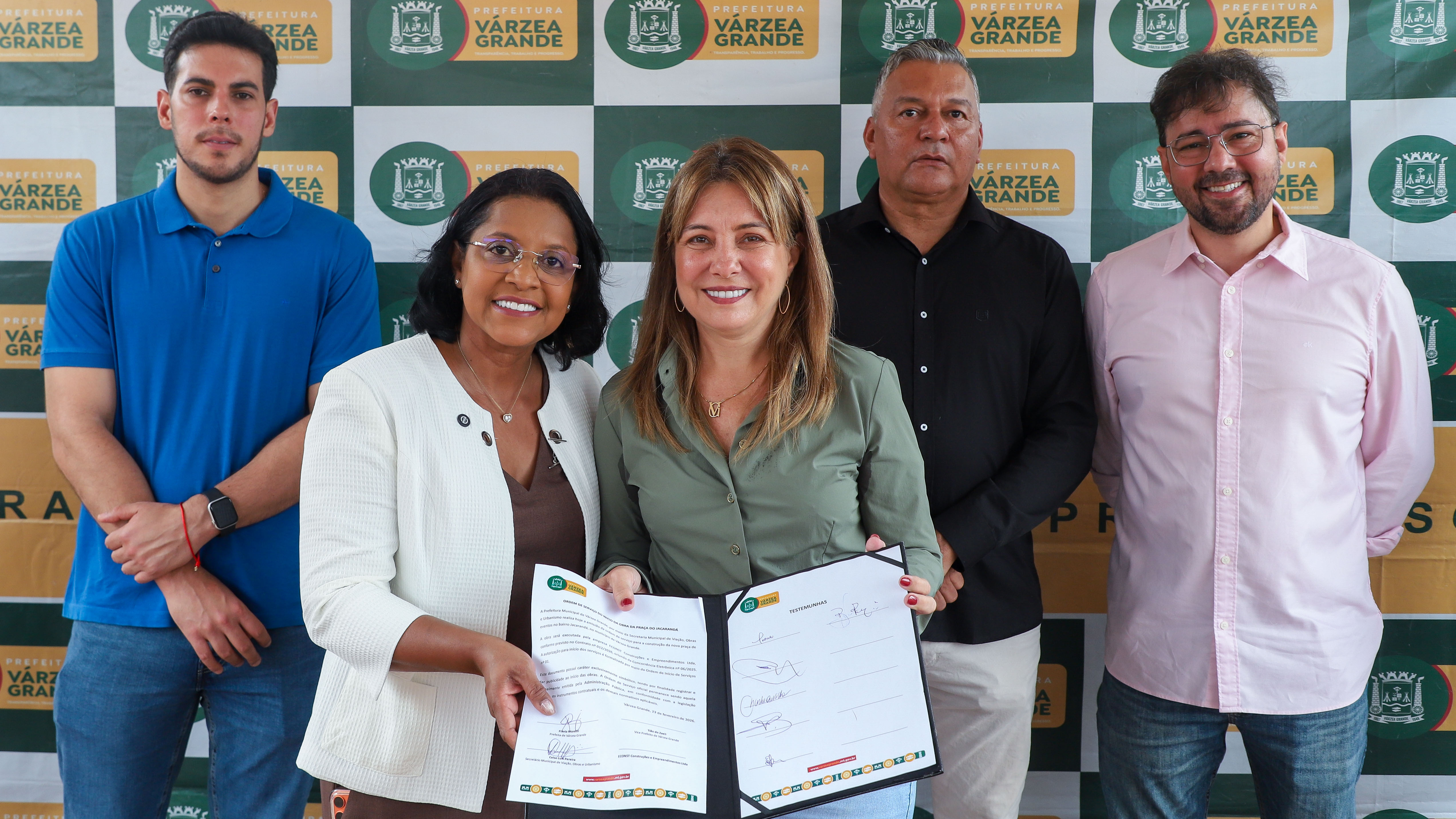 A Prefeitura de Várzea Grande realizou, na manhã desta segunda-feira (23), o lançamento da obra da nova Praça do Jacarandá, no bairro Jacarandá. A iniciativa amplia os investimentos em infraestrutura urbana e cria mais um espaço de convivência e lazer para a comunidade.