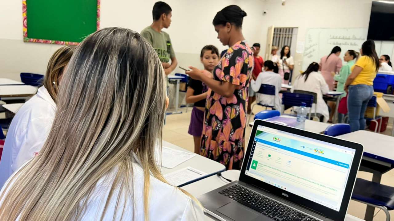 Essa grande ação também foi realizada no Colégio Salim Nadaf, região da Cohab Cristo Rei, onde a equipe de saúde do Parque do Lago e da Construmat deu continuidade às ações junto à comunidade, vacinando, pesando beneficiários do Bolsa Família e atualizando o cartão de vacina.